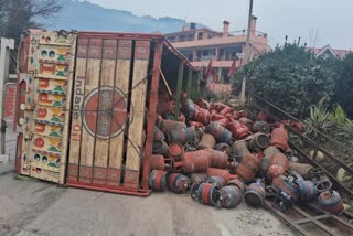 ETV Bharat / सिलेंडर से भरा ट्रक पलटा