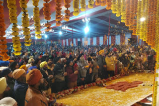 सिख समुदाय ने गुरु ग्रंथ साहिब पर पुष्प वर्षा कर मनाया नया साल, सोनिहाल के जयकारों से गूंजा गुरुद्वारा