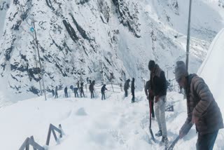 भैरव और कुबेर ग्लेशियर क्षेत्र में जमी 15 से 18 फीट बर्फ, हटाने में जुटे 60 मजदूर