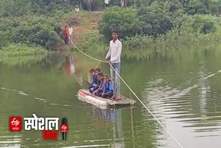 शिक्षणासाठी विद्यार्थ्यांचा नदीतून जीवघेणा प्रवास; प्रशासनाचे दुर्लक्ष